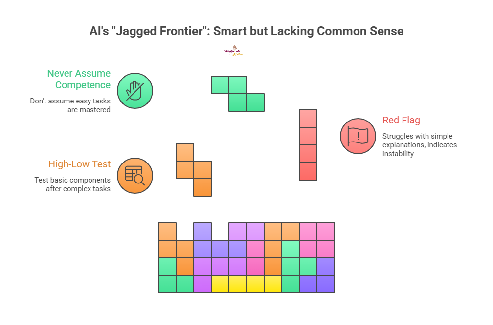 If an AI successfully completes a complex task (e.g., generating a complex financial forecast), immediately test it on a “low-stakes” basic component of that task (e.g., “Explain the basic assumption behind row 3 to a 5-year-old”).